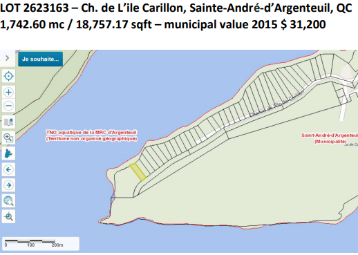 Ch. de L’ile Carillon, Sainte-André-d’Argenteuil, QC 1,742.60 mc / 18,757.17 sqft – municipal value 2015 $ 31,200