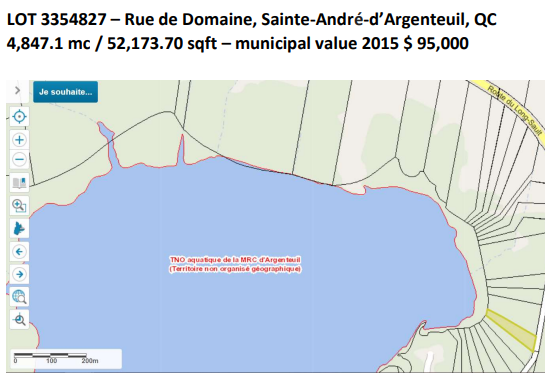 Rue de Domaine, Sainte-André-d’Argenteuil, QC 4,847.1 mc / 52,173.70 sqft – municipal value 2015 $ 95,000